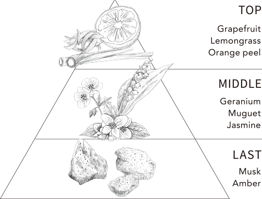 地中海のからりと爽快な青空をイメージした、清潔感と爽やかさを感じさせる香りです。