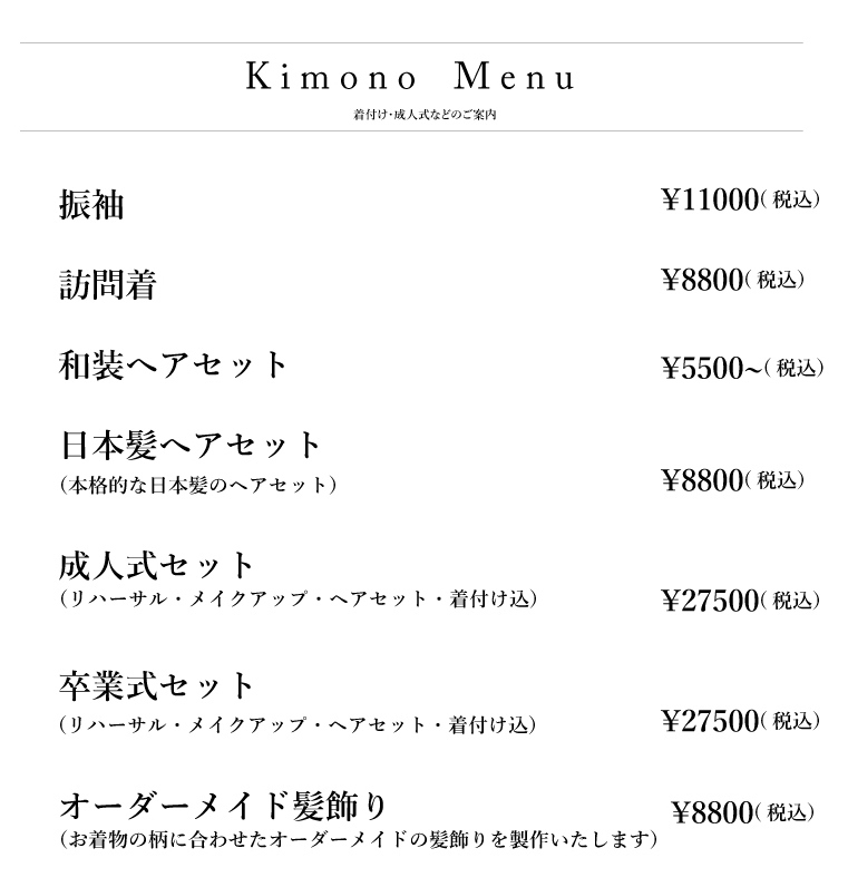 ※着付けMENUをご希望の方はなるべく早めのご連絡をお願いします。