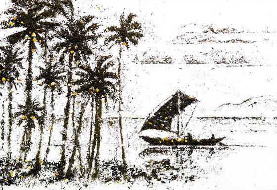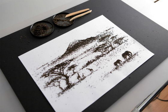 Beautiful Illustration Created by Utilizing Tea Leave
