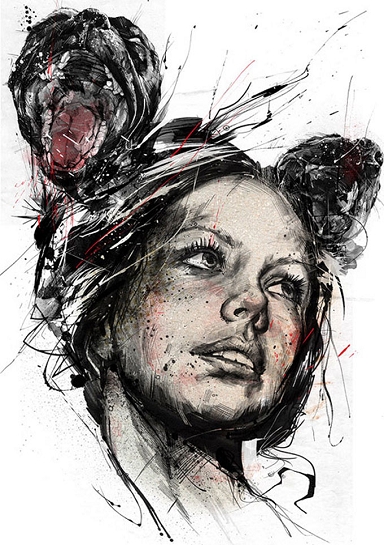 彼の仕事は従来のペンのみのドローイングと違い、スキャンした写真をも素材として使用することにより、手仕事とデジタルの融合による新しい作品を生み出し続けている。